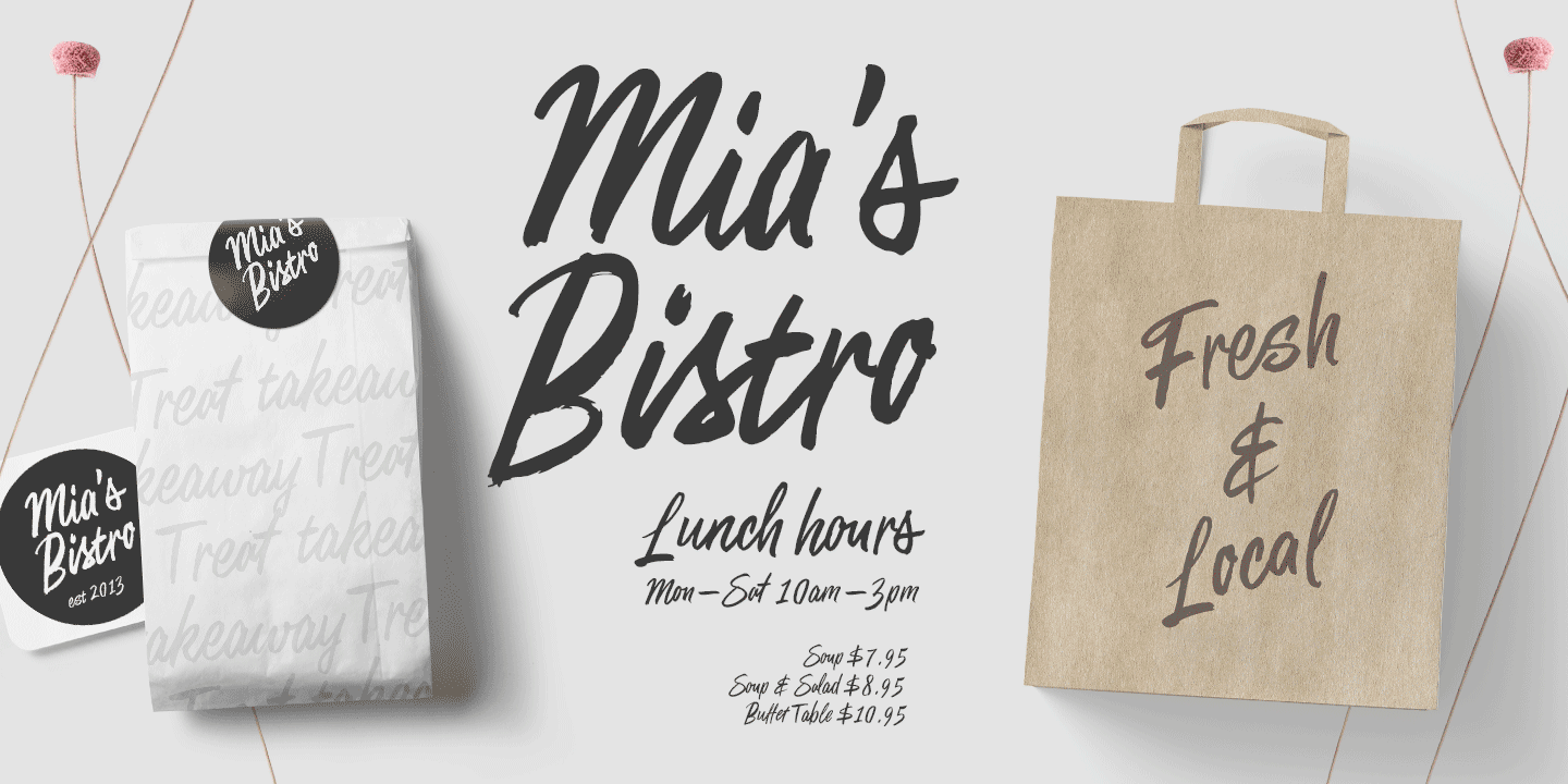 Matchstick is a great display brush to be used in writing headlines, packaging, posters or as a logotype. Matchstick works great when paired with strong sans serifs.