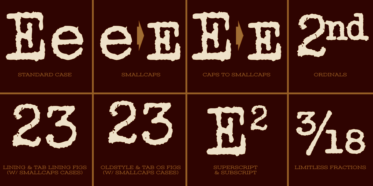 Opentype features include: