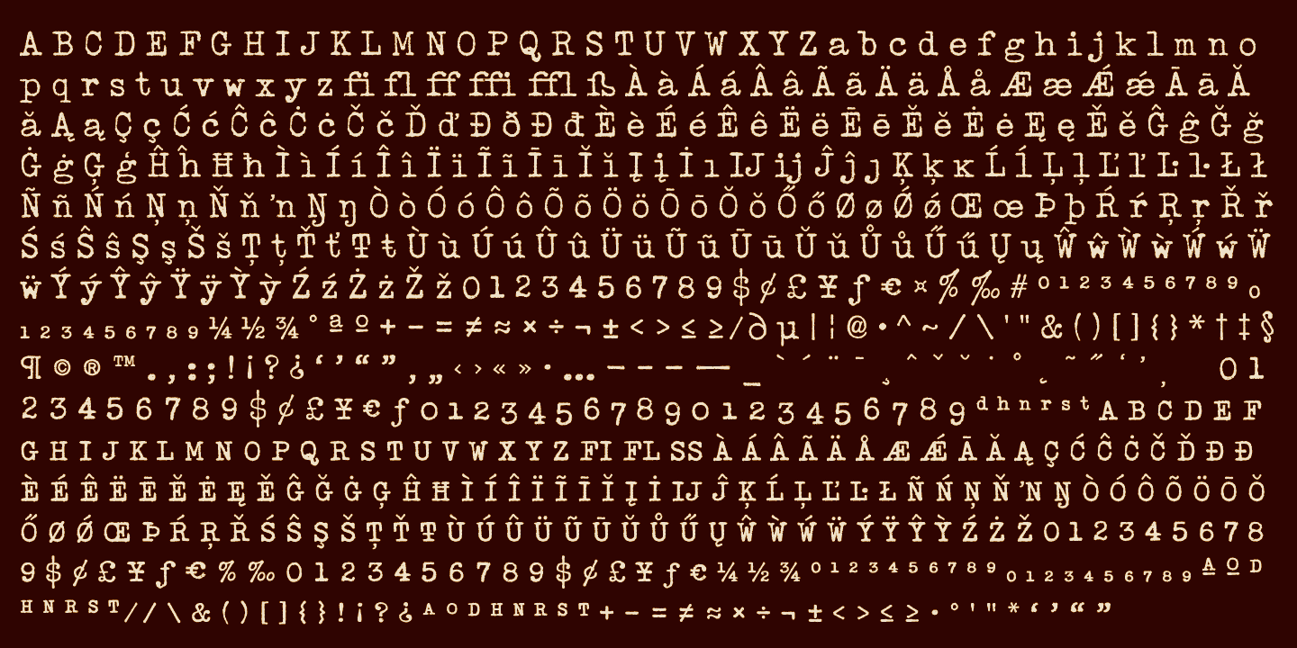 Buy NowOur Distressed Telegraph brings the unique individuality of the Large Elite Type No. 44 vintage typewriter keyset to the digital age. Vintage typewriters evoke a warmth and comfort to them, primarily because of their unpredictable "grunge" results from force of keystrokes to ribbon and paper. The SmallCaps and extensive figure sets add a more serious note to the nature of the typeface.