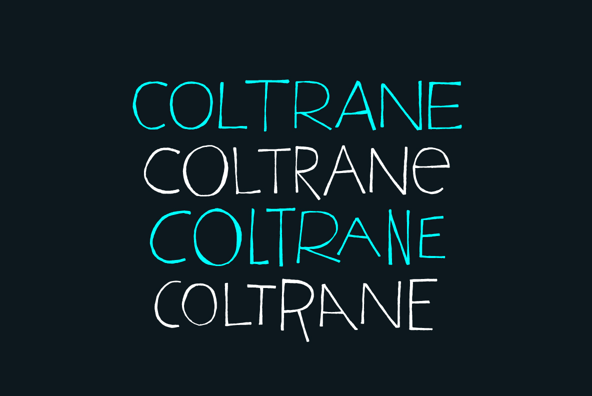 Buy NowInspired not by John, but rather his wife Alice, YWFT Coltrane strives to achieve Universal Consciousness through the jump out of Detroit and the piano ladder up to the ashram. Go drop the needle on the record of the same name while gazing deep at these letters--soul mates without a doubt. It might take a moment, and maybe some mood lighting, but you should see what we're talking about without having to change your name to Turiyasangitananda. Originally a handset font (named for another jazz great, Cannonball Adderley), it made its way through the Vedantic pathways to reincarnation as YWFT Coltrane in glorious Opentype, and we've been generous with 291 glyphs and all the fancy features thereto. Style and grace from inner space. Astral motion by the ocean and a magic tune on the moon. This font works well in culture, fashion and all of that next-level stuff you saw in those magazines at the coffeehouse. Designed by YouWorkForThem.